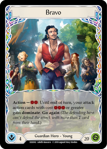 Action - [2 Resource]: Until end of turn, your attack action cards with cost [3 Resource] or greater gain dominate. Go again (The defending hero can't defend the attack with more than 1 card from their hand.)